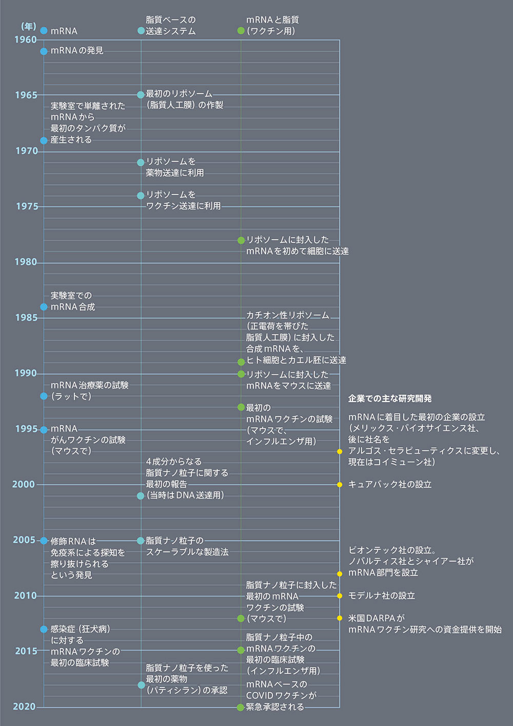 (Nature ダイジェスト Vol. 18 No. 11 mRNAワクチンの歴史より)